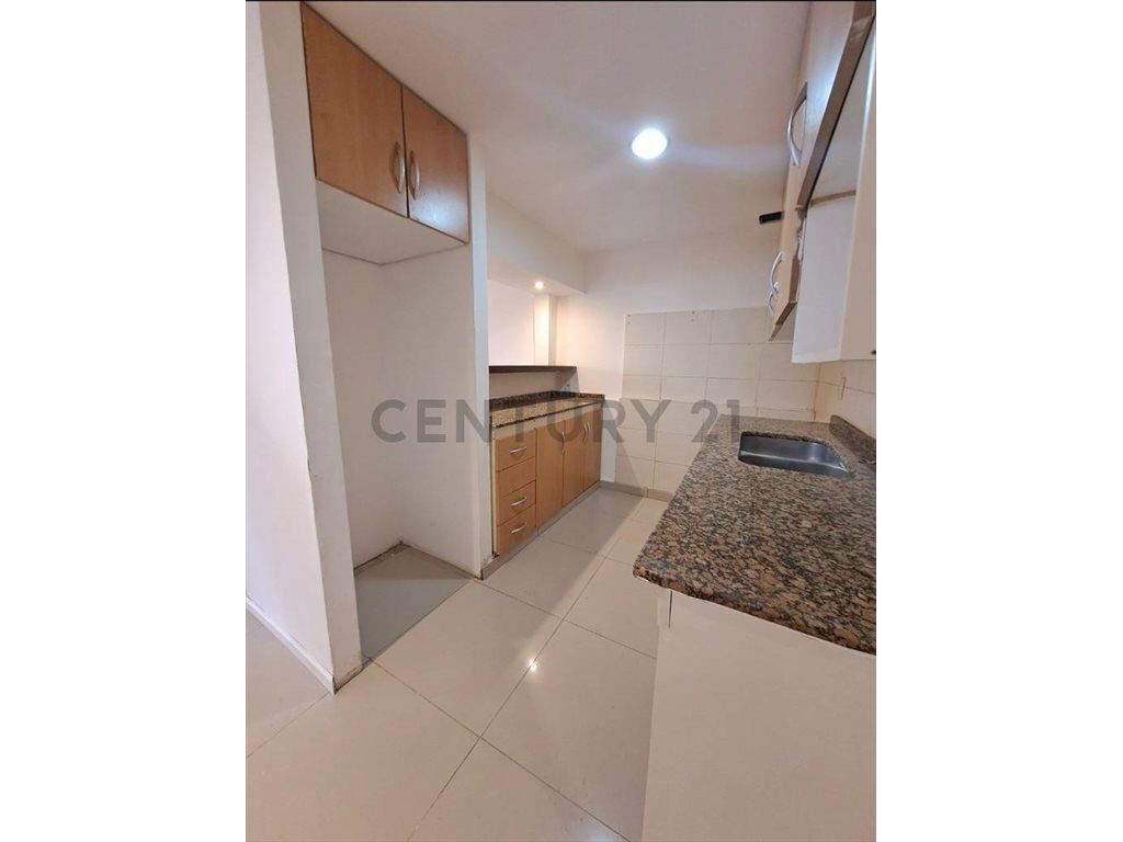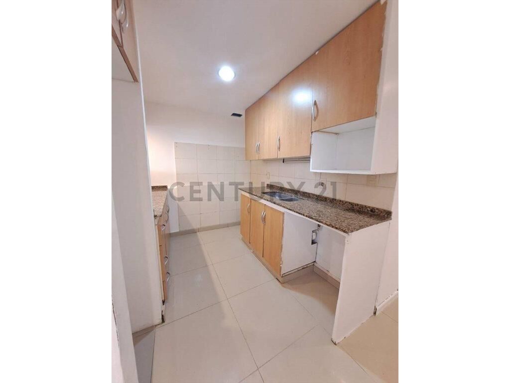 La cocina está semi integrada con barra y mesada de mármol, equipada con muebles aéreos y bajo mesada.