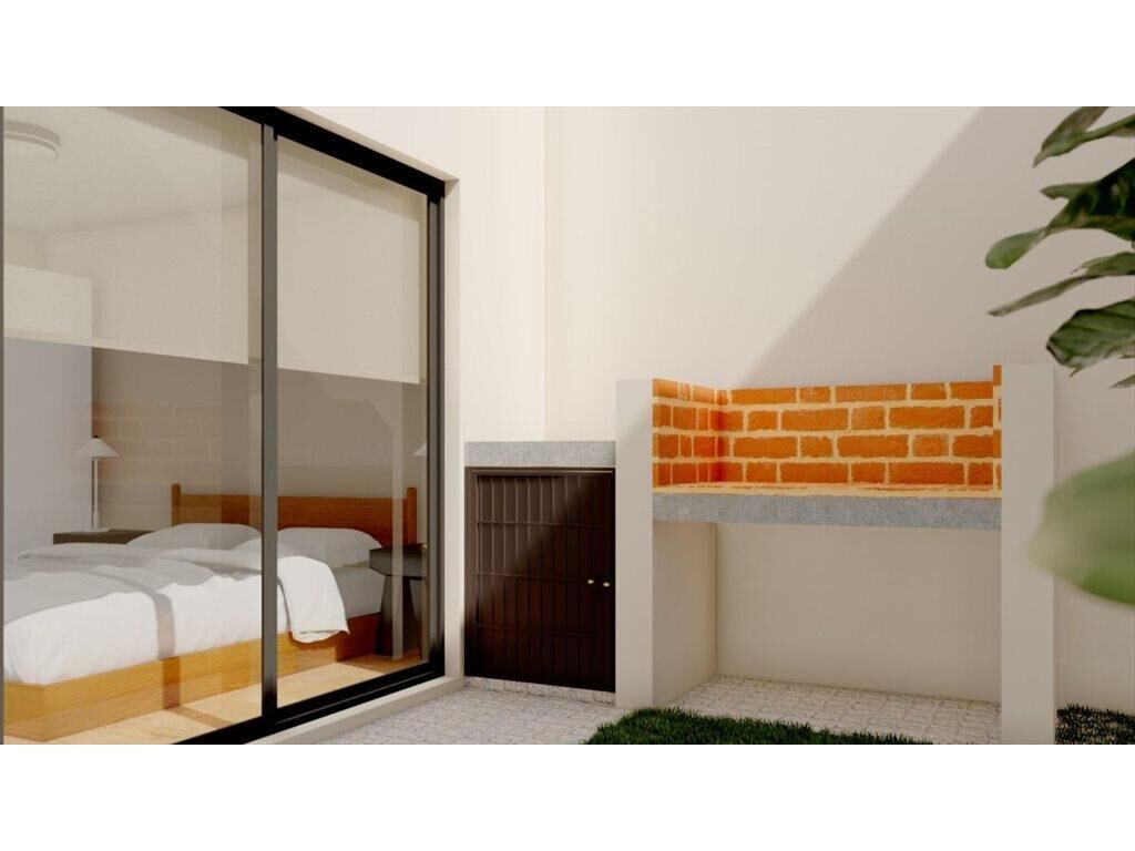 2 dormitorios (principal 10 m ², secundaria 7,72 m ²), 1 living comedor cocina 26,35 m ², 1 baño 2,5 m ² y un patio de 17,55m² que cuenta con parrillero; cada apartamento tiene un total de 65,45m².