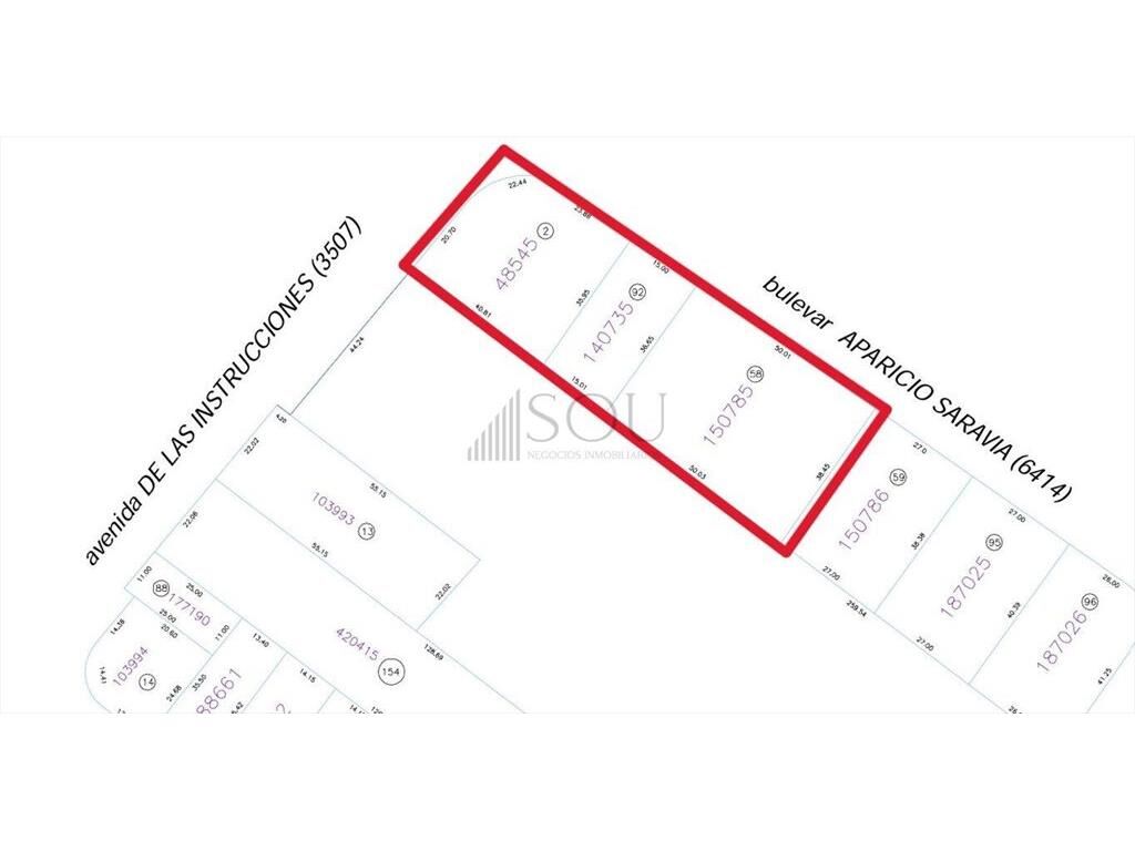 VIRGINIA DIHARCE - Cel: 091 781 001Se venden 3 padrones ubicados en la intersección de Av. de las Instrucciones y Bv. Aparicio Saravia. Lote total: 3.879 m2Suelo urbano consolidado intermedio FOS 60%Altura máxima 9 mts.Comisión inmobiliaria: 3 % más IVACompartimos con todos los colegasSocio CIU n° 1348