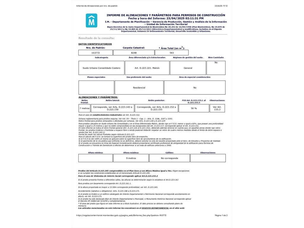 LA GRAN VENTAJA DE ESTA OPORTUNIDAD ES QUE EL PROYECTO ESTÁ APROBADO CON LA NORMATIVA ANTERIOR, QUE MEJORA LAS CONDICIONES CON RESPECTO A LA CANTIDAD DE METROS CUADRADOS PARA CONSTRUIR. Con la nueva normativa se puede construir hasta 13,50m aplicando retiro bilateral y profundidad de 25m.