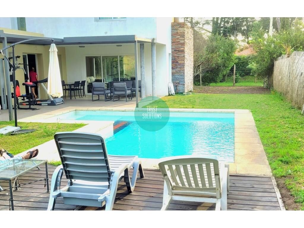 Venta y Alquiler Anual Casa estilo minimalista Con 4 dormitorios y dependencia de servicio más un escritorio 4 bañosLiving comedor con estufa a leña Cocina semi integrada Losa radiante sectorizada Aire acondicionado Piscina climatizada Venta usd 690.000Comisión inmobiliaria 3%+ivaAlquiler Anual usd 6000 por mes Comisión inmobiliaria un mes de alquiler+iva