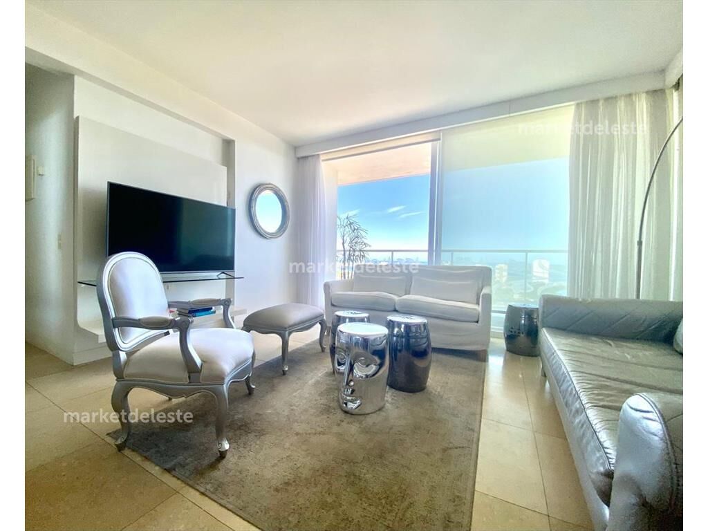 Apartamento único en edificio Yoo de 2 dormitorios y 2 baños (uno de ellos en suite), piso alto con vistas increíbles a playa mansa, unidad totalmente amoblada y equipada en excelente estado. Vistas a playa Brava desde dormitorio ppal. Además el apartamento cuenta con Garaje en planta baja. Aire acondicionado Multi-split en todos los ambientes y losa radiante sectorizada, pisos de marmol en living y baños, aberturas de aluminio de doble hoja y excelente calidad de terminaciones.