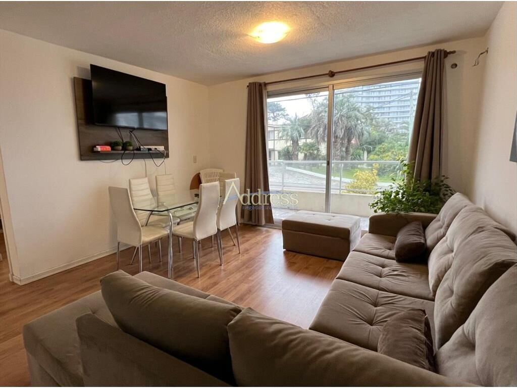 Muy agradable apartamento en alquiler, a metros de playa mansa. Consta de 2 dormitorios, 2 baños (uno en suite), cocina integrada por barra, amplio balcón. Aire acondicionado y TV cable, Wifi. Estacionamiento. Edificio con piscina exterior y pequeña interior climatizada en temporada, gimnasio, sala de juegos, parrilleros equipados, portería, etc.